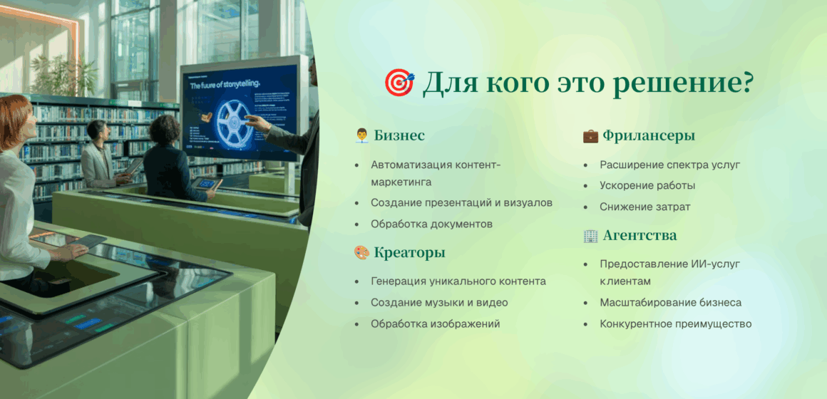 Вечером ты за полчаса создаешь презентацию, которая выглядит так, будто над ней работала команда дизайнеров. Раньше на это ушел бы весь выходной.